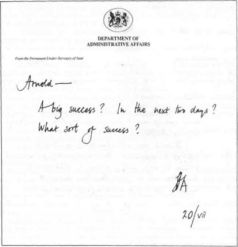 Арнольд не отрицал этого, но продолжал настаивать, что, если ПМ настроился на некий конкретный вариант, секретарь кабинета – хочешь, не хочешь – должен подчиниться.