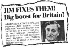 Король администрации Джим Хэкер сегодня здорово щелкнул по носу Общий рынок. Своим смелым решением, которое, несомненно, будет с энтузиазмом встречено в стране, он заявляет нашим европейским партнерам, что Англия намерена проводить самостоятельную политику в области информационной технологии.