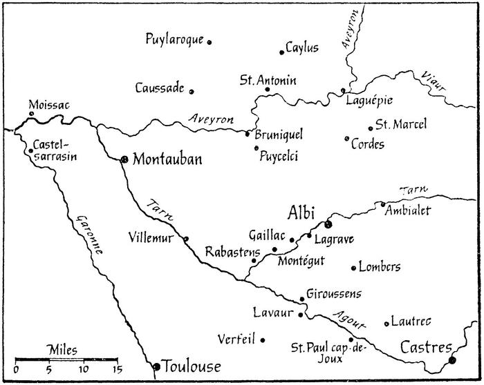 Дорога из Бирона пересекала самую резкую разделительную черту в ландшафте Лангедока, пятидесятимильный участок реки Гаронны от Ажена до Коссада, который отделяет великую равнину Тулузена от последних отрогов Центрального массива. Средневековые люди, как и мы, могли восхищаться окружающим природным ландшафтом. Священник из лагеря Симона мог лирически рассказывать о широкой долине реки Ло под Пенне, "о далеких просторах лугов, о богатстве возделанных полей, о роскошных виноградниках, о чудесном живительном воздухе равнин, пересекаемых прекрасными ручьями и реками". Но любовь к горам относится к совсем другому виду романтизма. Холмы Керси привлекают нас больше, чем людей той эпохи, которые представляли себе Эдемский сад как плоскую возделанную равнину, а долины Бургундии называли "ужасными местами", пригодными только для самых строгих монашеских орденов[21]21