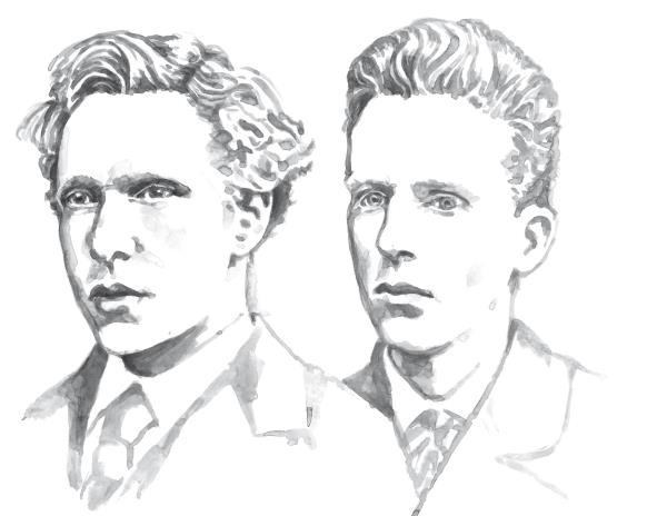 Винсент и Тео. Младший Тео стоит за плечом Винсента, присматривая за своим проблемным старшим братом. Тушь.