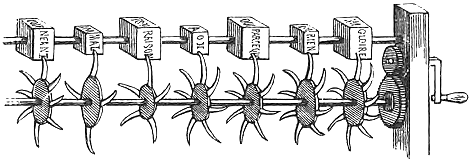 Я принес глубочайшую благодарность этому почтенному мужу за его любезное посвящение меня в тайны своего великого изобретения и дал обещание, если мне удастся когда-нибудь вернуться на родину, воздать ему должное, как единственному изобретателю этой изумительной машины. Я попросил у него позволения срисовать его машину. Я сказал ему, что хотя в Европе существует между учеными обычай похищать друг у друга изобретения, но я обещаю принять все меры, чтобы честь этого изобретения всецело осталась за ним и никем не оспаривалась.