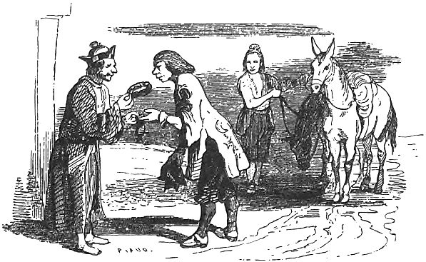 Чтобы добраться до Мальдонады, откуда корабль должен был доставить меня в Лаггнегг, я нанял проводника с двумя мулами. Затем я дружески простился с моим покровителем Мьюноди, сделавшим мне на дорогу богатый подарок, и отправился в путь.