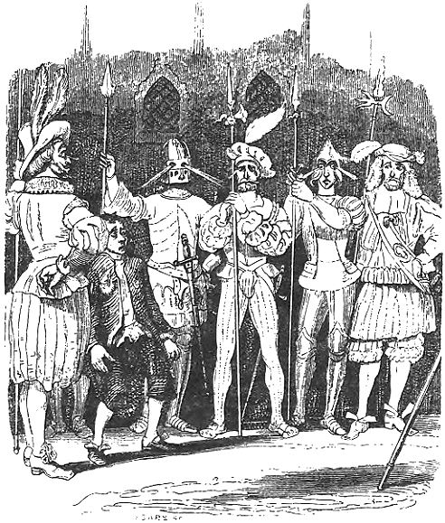 По обеим сторонам дворцовых ворот стояла стража, вооруженная и одетая по весьма старинной моде. В наружности их было нечто такое, что наполнило мое сердце невыразимым ужасом.
