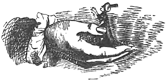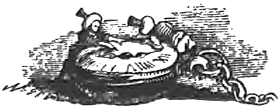 В большом кармане с правой стороны средней покрышки Человека-Горы (так я перевожу слово «ранфуло», под которым они разумели штаны) мы увидели полый железный столб длиной в рост человека. Этот столб прикреплен к куску твердого дерева, более широкому, чем сам столб; с одной стороны столба торчат большие куски железа весьма странной формы, назначения которых мы не могли определить. Подобная же машина найдена и в левом кармане. В малом кармане с правой стороны оказалось несколько плоских дисков из белого и красного металла различной величины. Иные из белых дисков так велики и тяжелы, что мы вдвоем едва могли поднять их. По-видимому, они изготовлены из серебра.