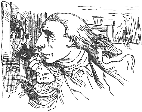 Там я лег на землю и приблизил лицо к окнам среднего этажа; таким образом я получил возможность осмотреть роскошнейшие палаты, какие только можно себе представить. Я увидел императрицу и молодых принцев, окруженных свитой. Ее императорское величество милостиво соизволила улыбнуться мне и грациозно протянула через окно свою ручку, которую я поцеловал.