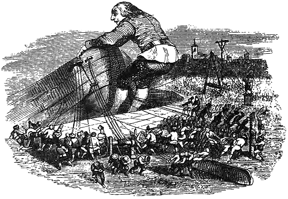 Вышеназванный Куинбус Флестрин, взяв в плен и доставив в императорский порт флот императора Блефуску, получил повеление от его императорского величества захватить все остальные корабли упомянутой империи Блефуску. Означенное повеление преследовало в высшей степени важные государственные цели, а именно: обратить эту империю в провинцию под управлением нашего наместника, казнить укрывающихся там тупоконечников и вообще полностью искоренить тупоконечную ересь. Однако упомянутый Флестрин, как вероломный изменник, просил его благосклоннейшее и светлейшее императорское величество избавить его, Флестрина, от исполнения упомянутого поручения, не желая, как он заявил, применять насилие в делах совести и уничтожать вольности невинного народа.