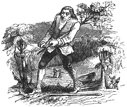 Это обстоятельство заставило меня поспешить с отъездом. Желая, чтобы я возможно скорее покинул их страну, двор оказывал мне всяческое содействие в починке лодки. Пятьсот человек под моим руководством сделали для нее два паруса, простегав сложенное в тринадцать раз самое прочное полотно. Изготовление снастей и канатов я взял на себя. Я скручивал вместе по десять, двадцать и тридцать самых толстых и прочных тамошних канатов. Большой камень, найденный на берегу, послужил мне якорем. Мне дали жир трехсот коров для смазки лодки и для других надобностей. С невероятными усилиями я срезал несколько самых высоких строевых деревьев на мачты; в изготовлении их мне оказали, впрочем, большую помощь корабельные плотники его величества, которые выравнивали и обстругивали то, что было сделано мною вчерне.