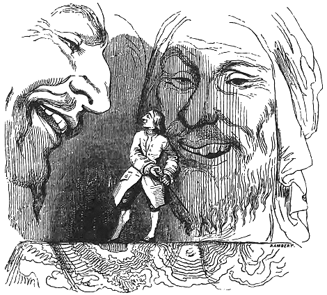 По выздоровлении я явился к королю благодарить его за оказанные мне милости. Его величество изволил много шутить над моим приключением. Он спрашивал, какие мысли мне приходили в голову, когда я был в лапах обезьяны, как мне понравились ее кушанья и манера угощать, как повлиял на мой аппетит свежий воздух на крыше. Его величеству угодно было осведомиться, как бы я поступил в подобном случае у себя на родине. На эти вопросы я отвечал его величеству, что обезьян в Европе не водится. Их привозят туда, как диковинку, из чужих стран, и они так малы, что я справился бы с целой дюжиной этих животных, если бы они осмелились на меня напасть. Вероятно, я сумел бы расправиться и с тем чудовищем (обезьяна была не меньше слона), которое недавно на меня напало, не растеряйся я от страха и неожиданности. Я мог бы нанести этому страшилищу, когда оно просунуло лапу в мою комнату, такую рану кортиком, что оно радо было бы поскорее убраться подальше. Говоря это, я принял воинственную позу и схватился за рукоятку кортика, как человек, не допускающий никаких сомнений в своей храбрости. Но моя речь вызвала лишь громкий смех придворных, от которого они не могли удержаться, несмотря на все почтение к его величеству. Это навело меня на грустные мысли о бесплодности всех попыток добиться уважения к себе со стороны людей, стоящих неизмеримо выше нас. Впрочем, по приезде в Англию я не раз имел случай встречать людей, поведение которых по внешности напоминало мое поведение в стране великанов. Какой-нибудь ничтожный и презренный плут, не имея никаких заслуг, ни ума, ни здравого смысла, осмеливается подчас принимать важный вид и пытается равняться с величайшими людьми государства.
