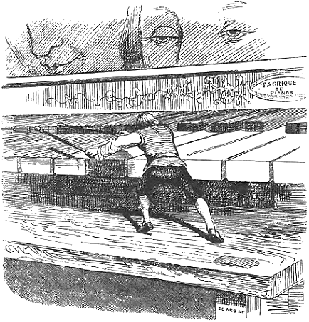 В молодости я учился играть на спинете. Такой же инструмент стоял в комнате Глюмдальклич. Два раза в неделю к ней приходил учитель давать уроки. Я называю этот инструмент спинетом прежде всего потому, что на нем играют так же, как на спинете. Мне пришла в голову мысль развлечь короля и королеву исполнением английских мелодий на этом инструменте. Но это оказалось чрезвычайно трудным и сложным делом. Инструмент имел в длину до шестидесяти футов, и каждая его клавиша была шириной в фут. Вытянув обе руки, я не мог захватить больше пяти клавиш, а чтобы надавить клавишу, я должен был изо всей силы ударить по ней кулаком. Понятно, что при таких условиях я не достиг бы никаких результатов, кроме страшной усталости. Поразмыслив, я приготовил две круглые дубинки; один конец у них был толще другого; толстые концы я обтянул мышиной кожей, чтобы не испортить клавишей и заглушить звук от ударов. Перед спинетом поставили скамью, которая была фута на четыре ниже клавиатуры. Я бегал по этой скамье взад и вперед и колотил дубинками по клавишам. Таким образом я ухитрился сыграть джигу(49) к величайшему удовольствию их величеств. Но это было самое изнурительное физическое упражнение, какое мне случалось проделывать. И все же при всем старании я мог пользоваться только шестнадцатью клавишами. Одновременная игра в обоих ключах, на басах и дискантах, была мне недоступна, и это, разумеется, сильно вредило моему исполнению.