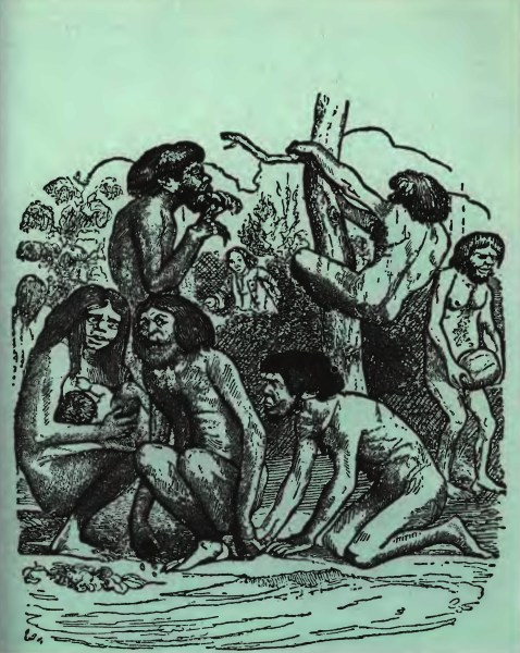 В этом горестном положении я направился вперед наудачу и скоро выбрался с песчаного берега и присел на холмик отдохнуть и поразмыслить, что делать дальше. Отдых немного подкрепил мои силы, и я продолжал путь, решив отдаться в руки первым дикарям, которых встречу по дороге, и купить у них жизнь за несколько браслетов, стекляшек и других безделушек, какими обыкновенно запасаются моряки, отправляясь в дикие страны; несколько таких безделушек находилось и у меня. Местность была пересечена длинными рядами деревьев, которые, по-видимому, были посажены здесь не рукою человека, а природой; между деревьями расстилались большие луга и поля, засеянные овсом. Я осторожно подвигался вперед, оглядываясь по сторонам из боязни, как бы кто-нибудь не напал на меня врасплох или не подстрелил сзади или сбоку из лука. Через несколько времени я вышел на проезжую дорогу, на которой заметил много следов человеческих ног, несколько коровьих, но больше всего лошадиных. Наконец я увидел в поле каких-то животных; два или три таких же животных сидели на деревьях. Их крайне странная и безобразная внешность несколько смутила меня, и я прилег за кустом, чтобы лучше их разглядеть. Некоторые подошли близко к тому месту, где я лежал, так что я мог видеть их очень отчетливо. Голова и грудь у них были покрыты густыми волосами – у одних вьющимися, у других гладкими; бороды их напоминали козлиные; вдоль спины и передней части лап тянулись узкие полоски шерсти; но остальные части их тела были голые, так что я мог видеть кожу темно-коричневого цвета. Хвоста у них не было, и ягодицы были голые, исключая места вокруг заднего прохода; я полагаю, что природа покрыла эти места волосами, чтобы предохранить их во время сидения на земле; ибо эти существа сидели, лежали и часто становились на задние лапы. Вооруженные сильно развитыми крючковатыми и заостренными когтями на передних и задних лапах, они с ловкостью белки карабкались на самые высокие деревья. Они часто прыгали, скакали и бегали с удивительным проворством. Самки были несколько меньше самцов; на голове у них росли длинные гладкие волосы, но лица были чистые, а другие части тела были покрыты только легким пушком, кроме заднепроходного отверстия и срамных частей; вымя их висело между передними лапами и часто, когда они ползли на четвереньках, почти касалось земли. Волосы как у самцов, так и у самок были различных цветов: коричневые, черные, красные и желтые. В общем, я никогда еще во все мои путешествия не встречал более безобразного животного, которое с первого же взгляда вызывало бы к себе такое отвращение. Полагая, что я достаточно насмотрелся на них, я встал с чувством омерзения и гадливости и продолжал свой путь по дороге в надежде, что она приведет меня к хижине какого-нибудь индейца. Но не успел я сделать нескольких шагов, как встретил одно из описанных мною животных, направлявшееся прямо ко мне. Заметив меня, уродина остановилась и с ужасными гримасами вытаращила на меня глаза как на существо, никогда ею не виданное; затем, подойдя ближе, подняла свою переднюю лапу – то ли из любопытства, то ли со злым умыслом, – я не мог определить. Тогда я вынул тесак и плашмя нанес им сильный удар по лапе животного; я не хотел бить его лезвием, ибо боялся, что навлеку на себя недовольство обитателей этой страны, если им станет известно, что
