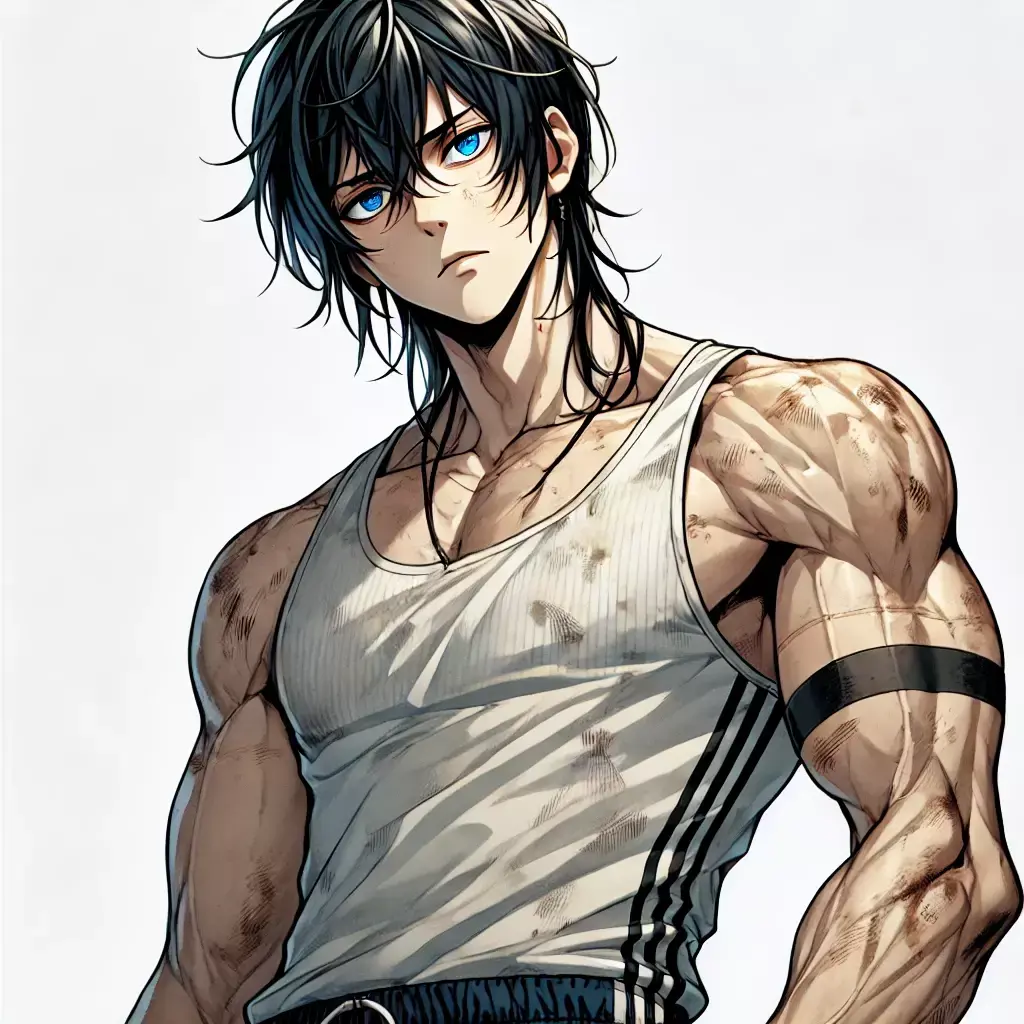 Его некогда аккуратные волосы превратились в хаос, не знавший ножниц и расчески. Пот стекал по лицу, обрамлённому жёсткими чертами, где в фиолетовых глазах горело нечто большее, чем решимость, – это был огонь, рождённый в пепле отчаяния и упорства.
