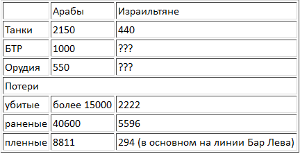 Трехнедельная война Иом Киппур дорого обошлась обеим сторонам. Давид Эшель приводит следующие цифры: