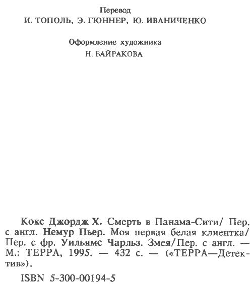 Текст книги "Моя первая белая клиентка[ Смерть в Панама-Сити. Моя первая белая клиентка. Змея]"