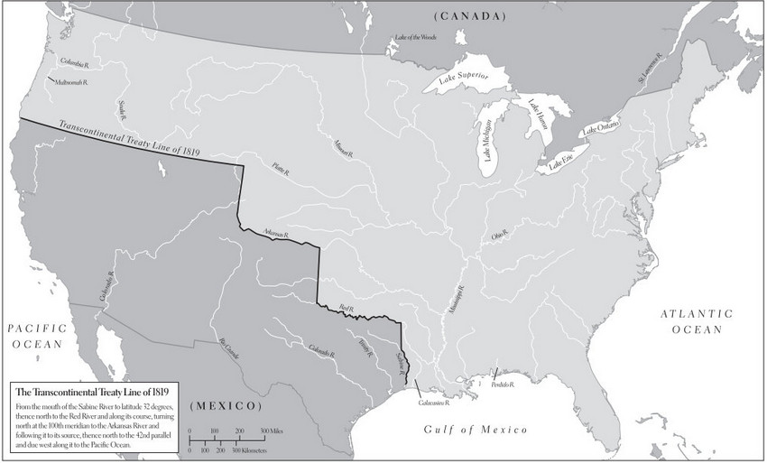 В феврале 1819 года между двумя странами было достигнуто соглашение. Монро отказался от своего требования о Техасе, посчитав, что его приобретение усугубит и без того опасный внутренний кризис, связанный с рабством на территории Миссури. Вместо этого, по предложению Адамса, Соединенные Штаты потребовали от Испании претензий на тихоокеанский северо-запад – территорию, на которую также претендовали Великобритания и Россия. Поначалу Онис колебался. Но перед лицом непреклонности США и без поддержки Великобритании он отступил. Так называемый Трансконтинентальный договор оставил Техас в руках Испании, но передал Соединенным Штатам неоспоримые права на все Флориды и испанские претензии на Тихоокеанский Северо-Запад.
