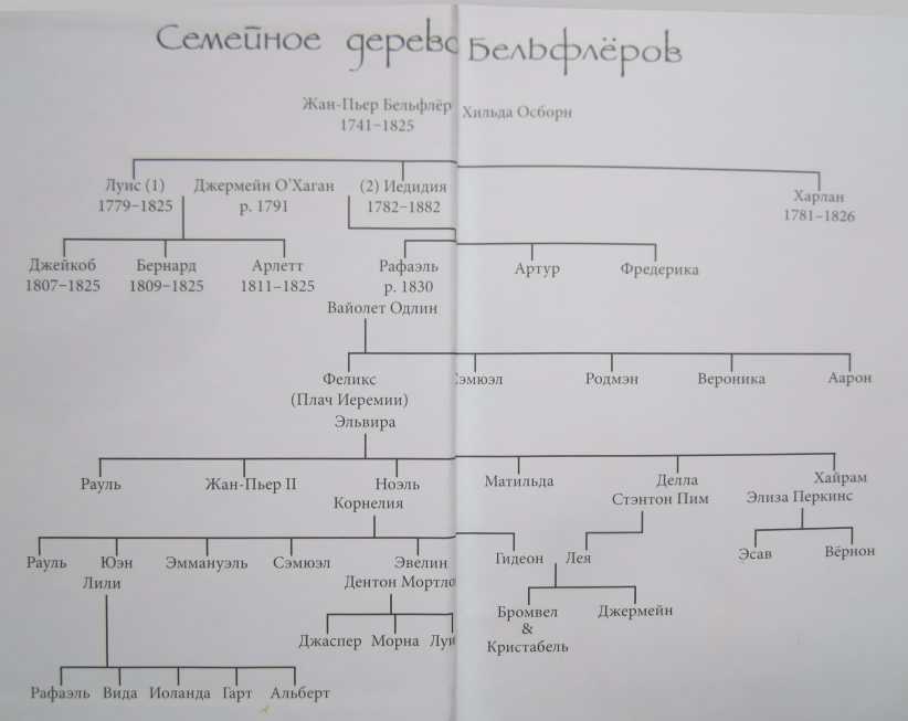 От соседей в долине Бельфлёры всегда отличались не только относительным богатством и скандальным поведением, но и выдающейся историей невзгод. Умеренно одаривая их везением, судьба не скупилась на удары. «Жизнь нашего рода невозможно определить одним словом, – думал Вёрнон Бельфлёр. – Трагедия? Или всего лишь фарс? А может, мелодрама? Или это проказы судьбы, череда случайностей, не подлежащих толкованию?» Даже бесчисленные враги Бельфлёров полагали их исключительным родом. Считалось, будто в крови Бельфлёров меланхолия причудливо сочетается со стремлением к действию и пылкостью, которая вдруг вступает в противоборство с жесточайшим унынием, своеобразным отсутствием воли. Пытаясь описать это явление, двоюродный дед Хайрам сравнил его с хлещущей из трубы струей воды, которая внезапно истончается и, бурля, уходит в сток… Покорная силе земного притяжения, она впитывается в почву. «Сейчас ты – такой, – говорил он, – а затем, вдруг, совершенно иной. Ты чувствуешь, будто тебя словно кто-то высасывает… Высасывает из тебя все рвение… И ты ничего, ничего не можешь с этим поделать».