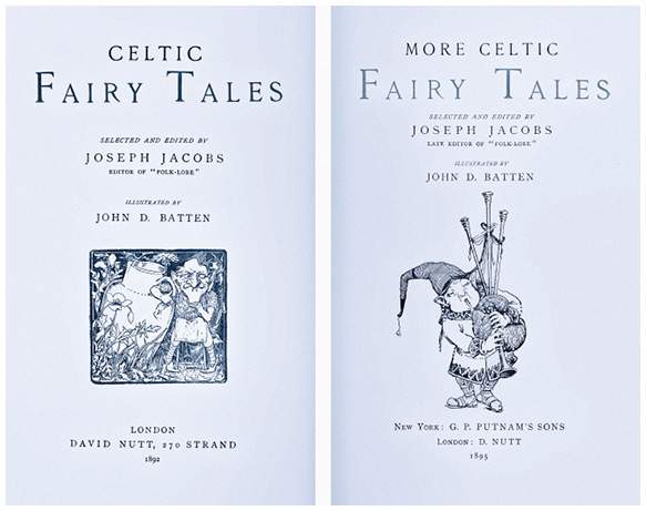 Jacobs, Joseph; Batten, John D. (illustrations). Celtic Fairy Tales. London: D. Nutt, 270 STRAND, 1892 (слева); Jacobs, Joseph; Batten, John D. (illustrations). More Celtic Fairy Tales. New York: G. P. Putnam’s Sons. London: D. Nutt, 1895 (справа)