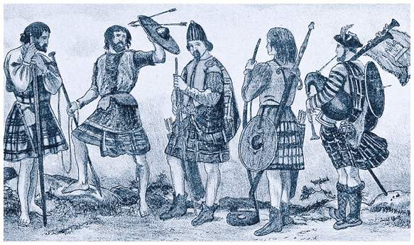 Шотландские хайлендеры. Иллюстрация Макса Тильке из книги «История костюма». Нью-Йорк, 1905 г.