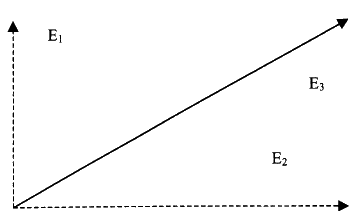 Теперь предположим, что имеются два вектора, Е 1и Е 2, воздействующие на частицу, как показано на диаграмме: