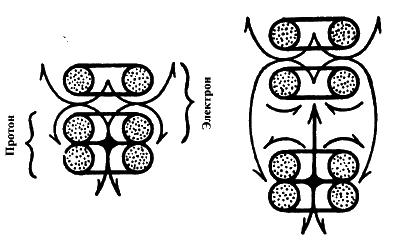 Вихревая модель нейтрона (слева) и атома водорода (справа) Крафта