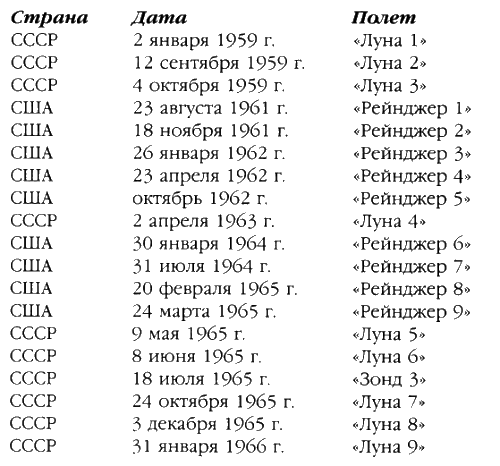 [Закрыть]. В подтверждение своего предположения они приводят расписание полетов к Луне космических программ СССР и США: