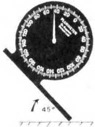 Основной инструмент – это уклономер, PLURI–V (ил. 101 а). PLURI–V состоит из корпуса со свободно подвижной стрелкой, которая становится противовесом, находясь в вертикальном положении. Внутри корпуса – специальная смазка, смазывающая оси и замедляющая колебание (как спидометр в машине).