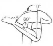 Этот прибор используется для измерения угла вращения тазобедренного сустава (ан деор, ан де дан, ил. 101 б). Вращение измеряется при распрямленном бедре, кандидат лежит на животе, колено согнуто под прямым углом, нижняя часть ноги вертикальна. Угловая часть PLURI-TOR С держится одной рукой на передней поверхности бедренной кости при совершении движения. Другая рука фиксирует таз от наклона. Нужно внимательно следить за соприкосновением колен, т. к. скос дает неправильные результаты (повышает внешнее вращение).