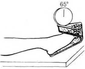 Этот инструмент предназначен для измерения степени сгибания и разгибания голеностопного сустава (ил. 101 г). Он состоит из основной пластиковой пластинки, наклоненной в направлении пальцев, к которой крепится PLURI–V. Инструмент устанавливается так, чтобы в вертикальной позиции означал нейтральное положение стопы лежа. Сгибание и разгибание стопы измеряется при выпрямленном коленном суставе. Кандидат лежит на спине, a PLURI–V крепко прикрепляется к подошве стопы. В таком положении совершается движение. Здесь важно правильное установление прибора, т. к. нежелательные движения суставов могут повлиять на результат.