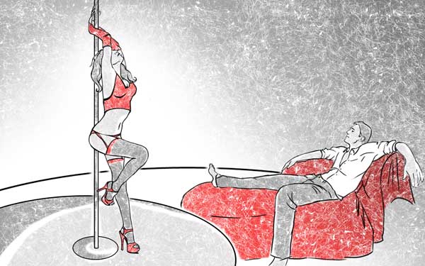 Остальные мужчины прыгают около неё как сумасшедшие, суют ей деньги в трусики, поскольку другой одежды на ней больше нет.