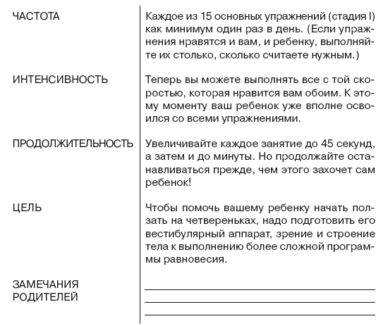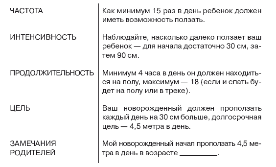✓ цель занятий (чего вы конкретно хотите достичь, выполняя упражнения, например: проползать 90 см в день или научить читать предложения);