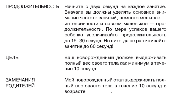 Помимо дневника, многие родители пользуются так называемой программой развития. Вот, например, как выглядит программа физического развития малыша, разработанная специалистами в институте Глена Домана.