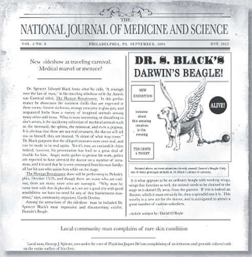 Звучали предположения о том, что эти создания представляют собой случайные мутации, оптические иллюзии или животных, одетых в замысловатые костюмы. Некоторые вполне справедливо считали их гибридами, созданными хирургическим путем. Но сам доктор Блэк объявлял их вновь открытыми формами жизни. Вот что писал «Чикагский научный журнал» в осеннем выпуске 1891 года: