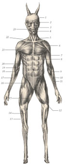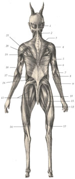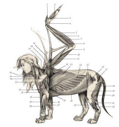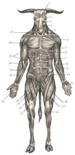 Этот экземпляр обладает уникальной мускулатурой, необходимой для того, чтобы поддерживать голову минотавра во всех ее возможных положениях и применениях, включая поединок. Я собрал разрозненные части тел существ, похоже, принадлежавших к тому же виду. Этого недостаточно, чтобы сделать вывод о существовании каких-либо вариаций представленного в данном манускрипте вида. Я уверен, что минотавр был уникальным животным, несмотря на противоречивые данные о его историческом наследии. Представляется очень важным рассмотреть весьма реальный вопрос о его предках; некоторые из них могли обладать шестью конечностями – четырьмя ногами и двумя руками, как у кентавра. Тем не менее я не располагаю данными, позволяющими утверждать, что это действительно так.