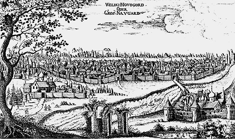 Вид Новгорода. Гравюра из книги Адама Олеария