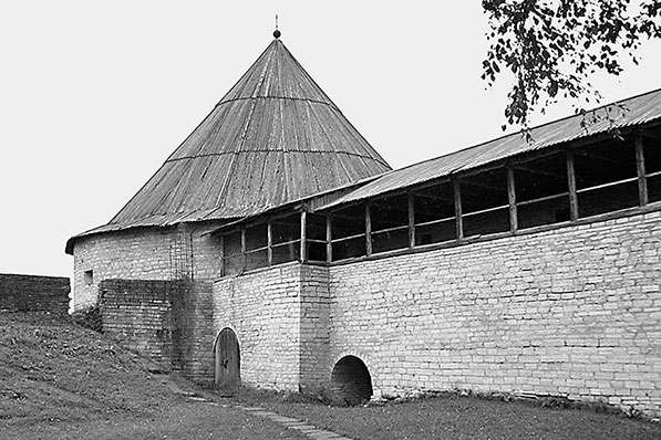 Внутренний вид прясла крепостной стены Ладожской крепости после реставрации. Современная фотография