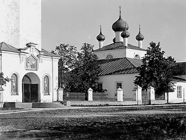 Церковь Спаса Нерукотворного образа в Новой Ладоге. Фрагмент фасада колокольни. Фотография С.М. Прокудина-Горского. 1909 г.
