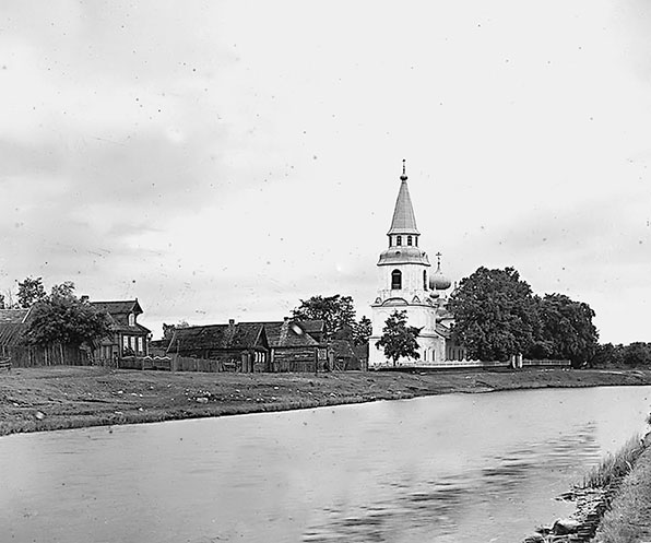 Село Дубно. Покровская церковь и канал. Фотография С.М. Прокудина-Горского. 1909 г.