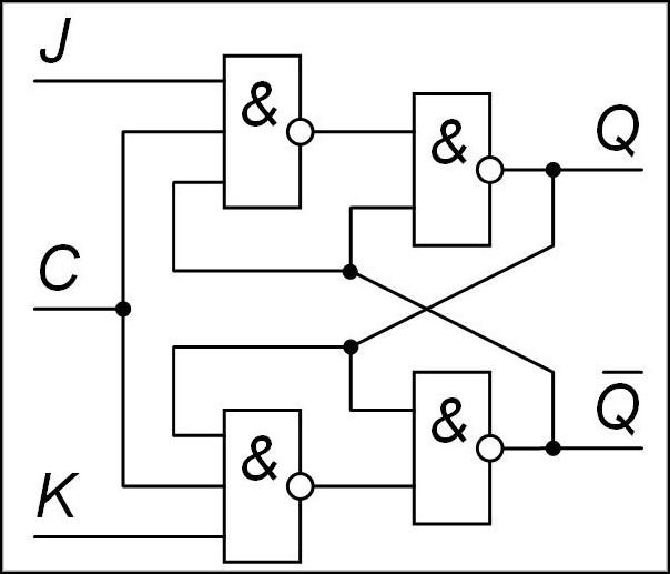 Сперва я собрал на своих аналогах транзисторов элемент И-НЕ. Потом на нём собрал RS-триггер. Затем развил это плетение до JK-триггера. Получилось хранилище одного бита информации. Посчитал количество транзисторов в итоговой схеме и мне стало страшно. Семнадцать штук на один бит!