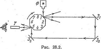 По скорости вращения призмы и дальности отстоящего зеркала, он смог рассчитать скорость света.