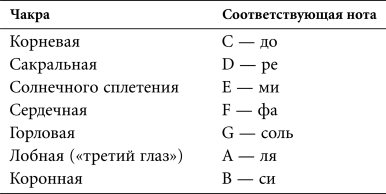 Считается, что каждый тон звукоряда соответствует определенной чакре, которая реагирует на него своей активностью, равновесием и раскрытием.