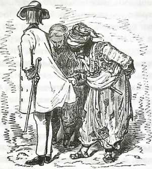 Различие между чертями и бандитами заключается лишь в том, что черти, что бы о них ни говорили, не так черны, как бандиты, а бандиты оказались более грязными, чем можно было предположить. Восемь обступивших нас мазуриков были до того грязны, что мне захотелось передать им все свои деньги с помощью каминных щипцов. Нужно было сильно постараться, чтобы понять, что когда-то их головные уборы были красного цвета, правда, никакая стирка не помогла бы восстановить изначальный цвет их одежды. Каждая скала королевства оставила свой