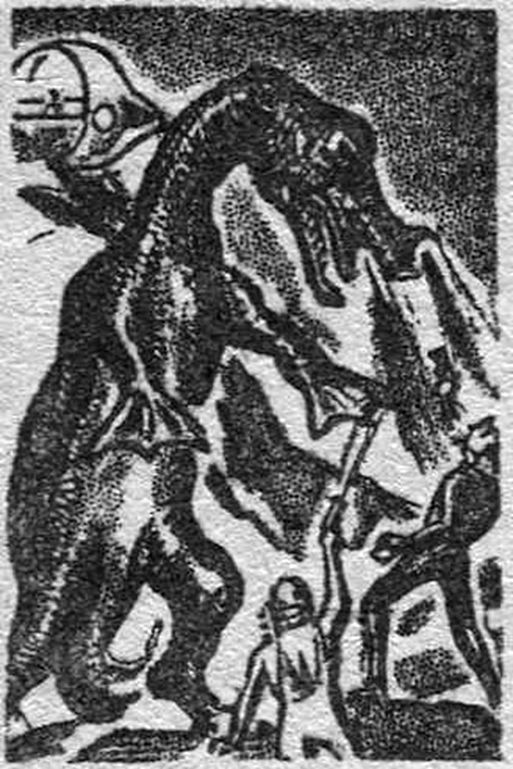 Внезапно из открытой двери в скале выскочило чудовищное существо, при виде которого все застыли в изумлённом ужасе.