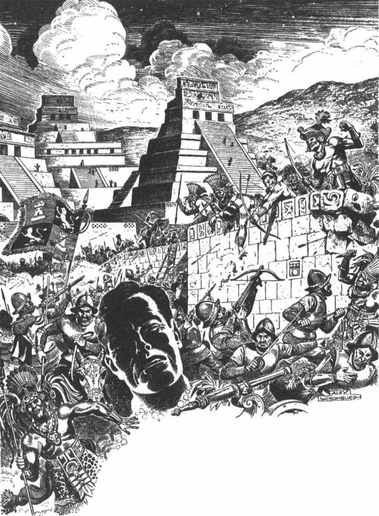 Повсюду раздавался бравый рев проклятий, крики и смех под ржание и топот лошадей. А еще гремели барабаны, и где-то ревела труба на фоне ярких звуков лязга оружия, похожих на удары оркестровых тарелок. Одним словом, вокруг были испанские солдаты, а возглавлял их человек по имени Альварадо.
