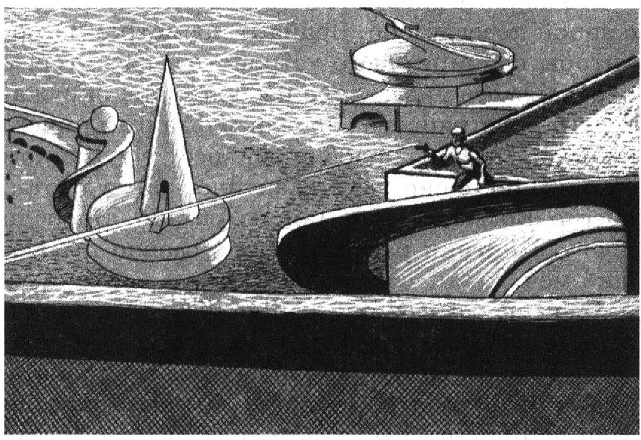 Через несколько секунд из вычислительной машины плавно вылетела лента с проложенным новым курсом. На всякий случай Брайант пересчитал все еще раз. Все. Готово. Он опять повернулся к экрану ультраскопа и, как ребенок, приложил большой палец к носу, растопырив ладонь и пошевелив пальцами. На его лице играла довольная улыбка.