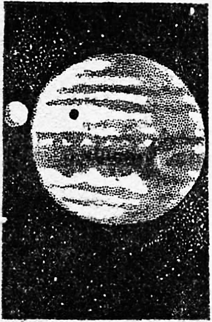 Солнце – на таком огромном расстоянии совсем крошечное – клонилось к горизонту. Тьма стремительно накрывала лунные джунгли. Но мрак вскоре рассеялся: в звёздное небо поднялся огромный зелёный щит Урана – исполинский диск, озаривший окружавшие джунгли, металлические домики и два блестящих космических корабля зелёным сиянием.