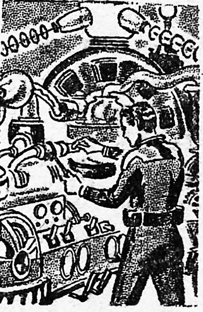 Неукротимая энергия Капитана Фьючера побуждала всех работать. Могучий Грэг втащил массивные цилиндрические генераторы в крейсер, предварительно освободив для них место. Курт Ньютон и Ото трудились, подготавливая прочные платформы и прикручивая механизмы на место. Мозг, ловко используя свои тяговые лучи вместо рук, безошибочно соединял сложные электрические кабели.