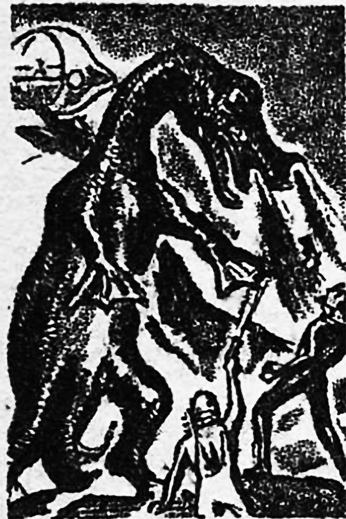 Грэг шагал сквозь возбуждённые орды зверолюдей, словно грозный стальной великан, в то время как Мозг бесшумно спланировал сверху. Эзра Гурни соскользнул со спины Голо, чтобы присоединиться к ним.