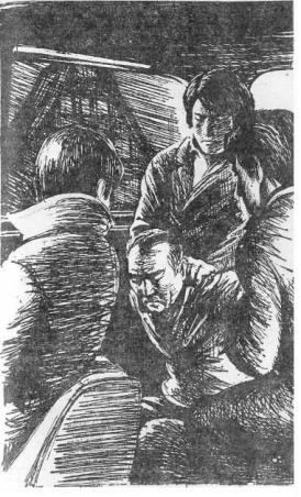 У оживленного перекрестка Сангэндзяя красный свет заставил машину остановиться. Цуцуи проводил взглядом ярко освещенную электричку. Рядом, спереди и сзади, ожидая зеленого света, стояли бесчисленные машины, но никто из сидевших в них не обратил внимания на ту машину, где сидел Цуцуи.