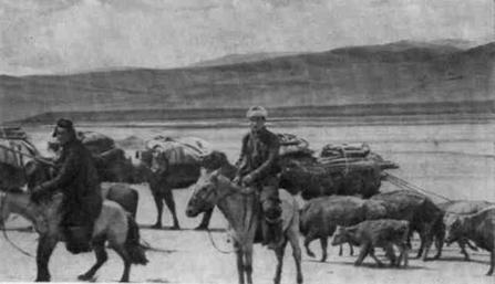 Как-то в горах Цаган-Богдо мы остановились в юрте пастуха. Он пас овец и верблюдов, принадлежавших пограничной заставе. До заставы было далеко. Но там нет кормов, пустыня не могла прокормить даже небольшое количество скота, поэтому пастух с семьёй забрался в горы Цаган-Богдо, где корма были сносные. Юрта охранялась громадными чёрными собаками, которые встретили нас свирепым лаем. Вскоре показался хозяин и пригласил нас к себе. Мы сели в северной стороне: здесь место гостям, правила монгольского гостеприимства нам были хорошо знакомы.