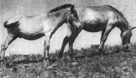 Большая редкость – лошадь Пржевальского. Молодые лошадки (по второму году).