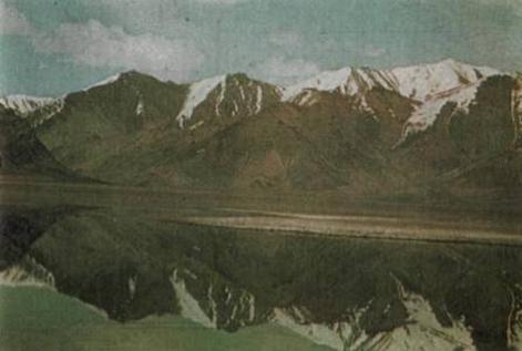 В спокойной воде памирского озера Рангкуль отражаются как в зеркале окружающие горы
